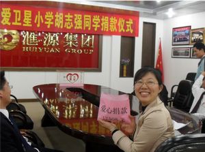 匯源員工向衛(wèi)星小學(xué)胡志強捐款